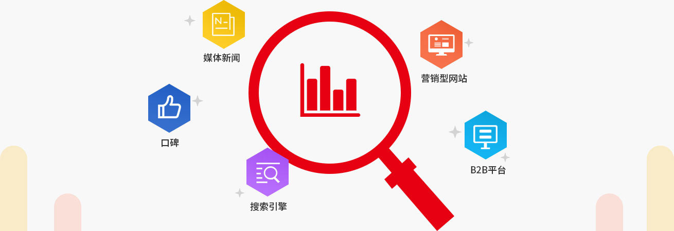 通過官網(wǎng)優(yōu)化、網(wǎng)絡(luò)媒體資源整合,對企業(yè)進(jìn)行關(guān)鍵詞霸屏推廣,給潛在客戶增強(qiáng)信任感。